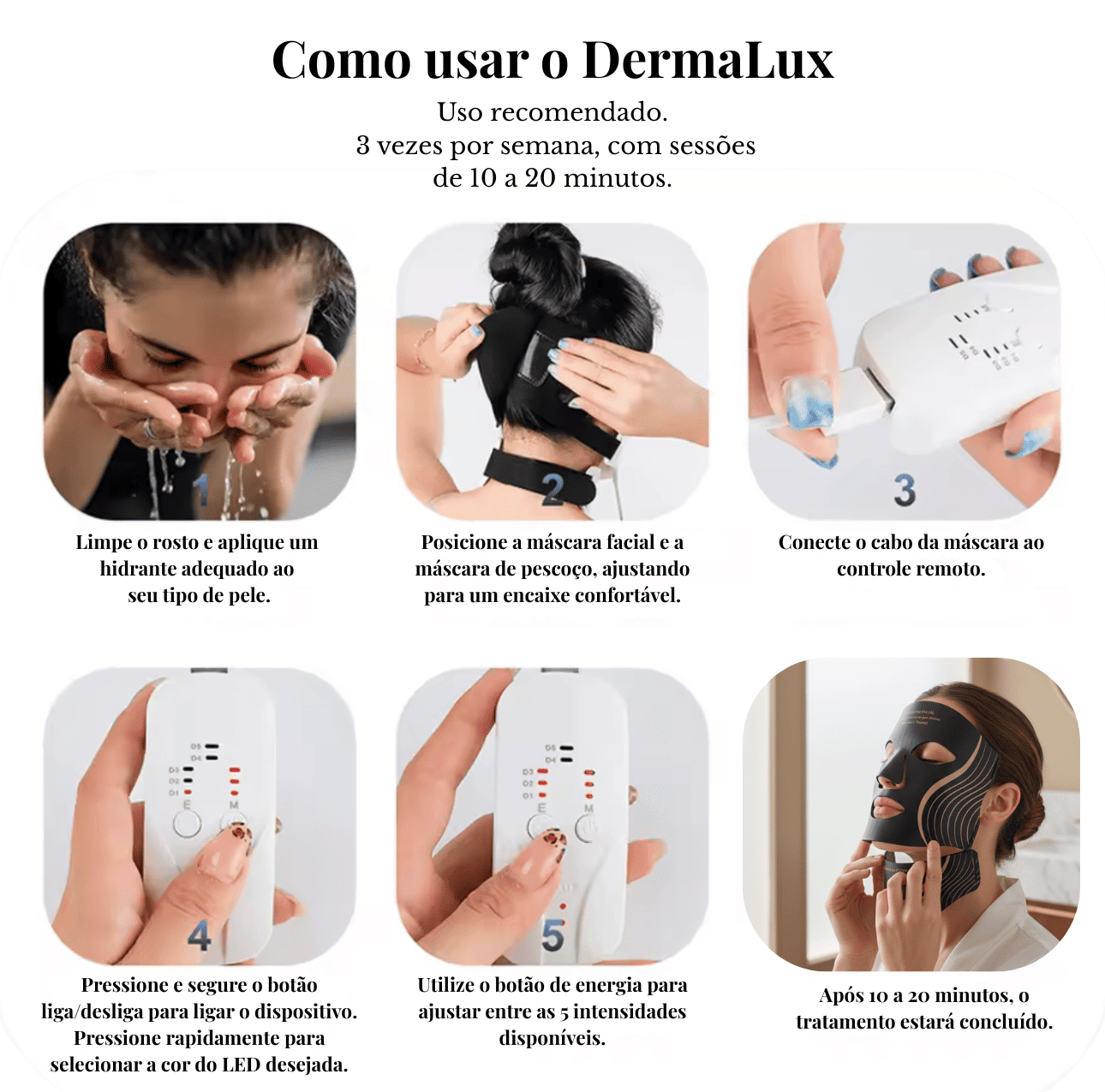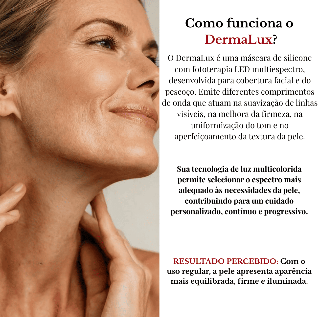 DermaLux™ Reparação e Cuidado Anti-Idade facial & pescoço - Máscara para marcas, sinais, clareamento e rejuvenescimento, cuidado com a pele