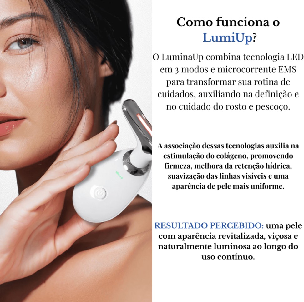 LumiUp - Levantamento Facial e Uniformização da pele - Anti sinais/rugas, firmeza facial, redutor de queixo duplo e massageador, cuidado com o rosto
